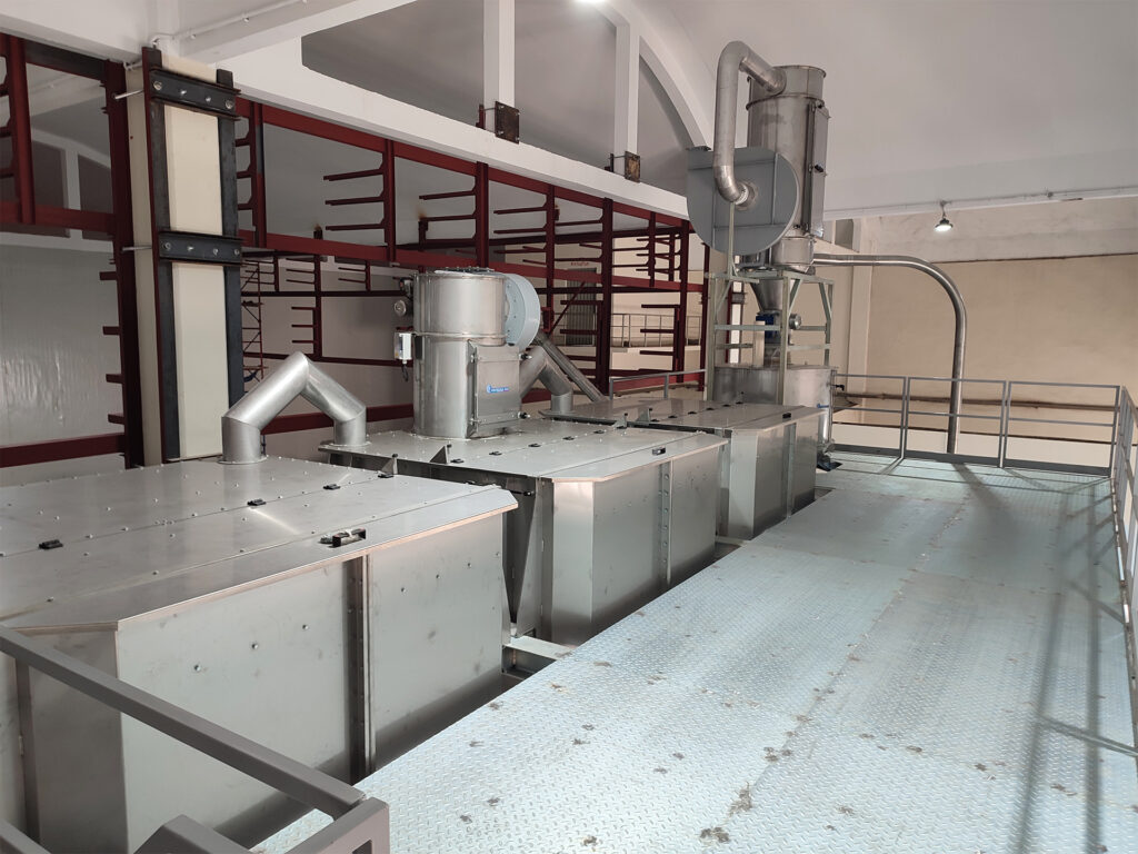 • Mechanical transport by chain conveyors, dosing augers and elevators;