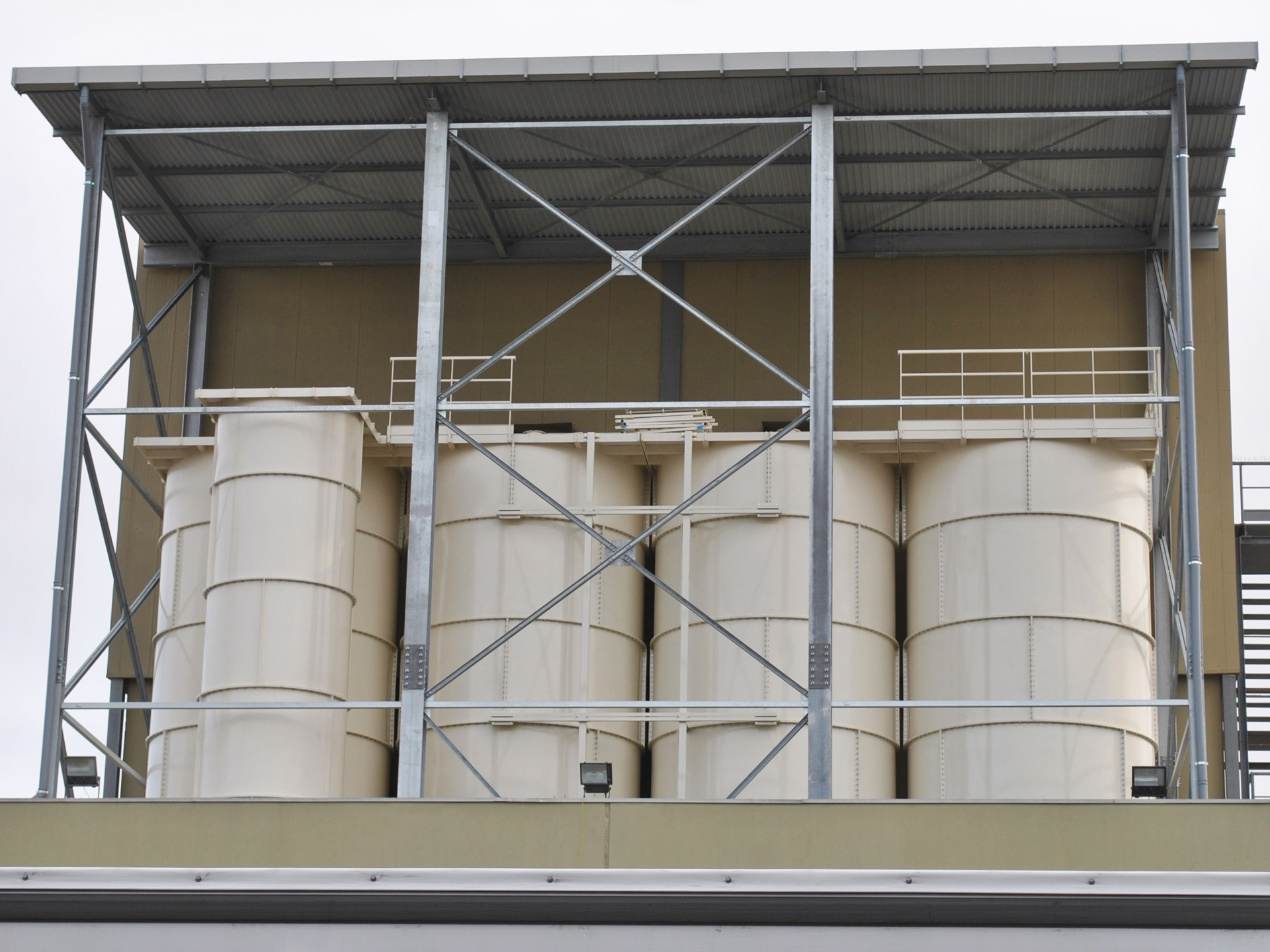 • Trevira® fabric silos (indoor silos with antistatic fabric bag and hot-dip galvanised steel structure).