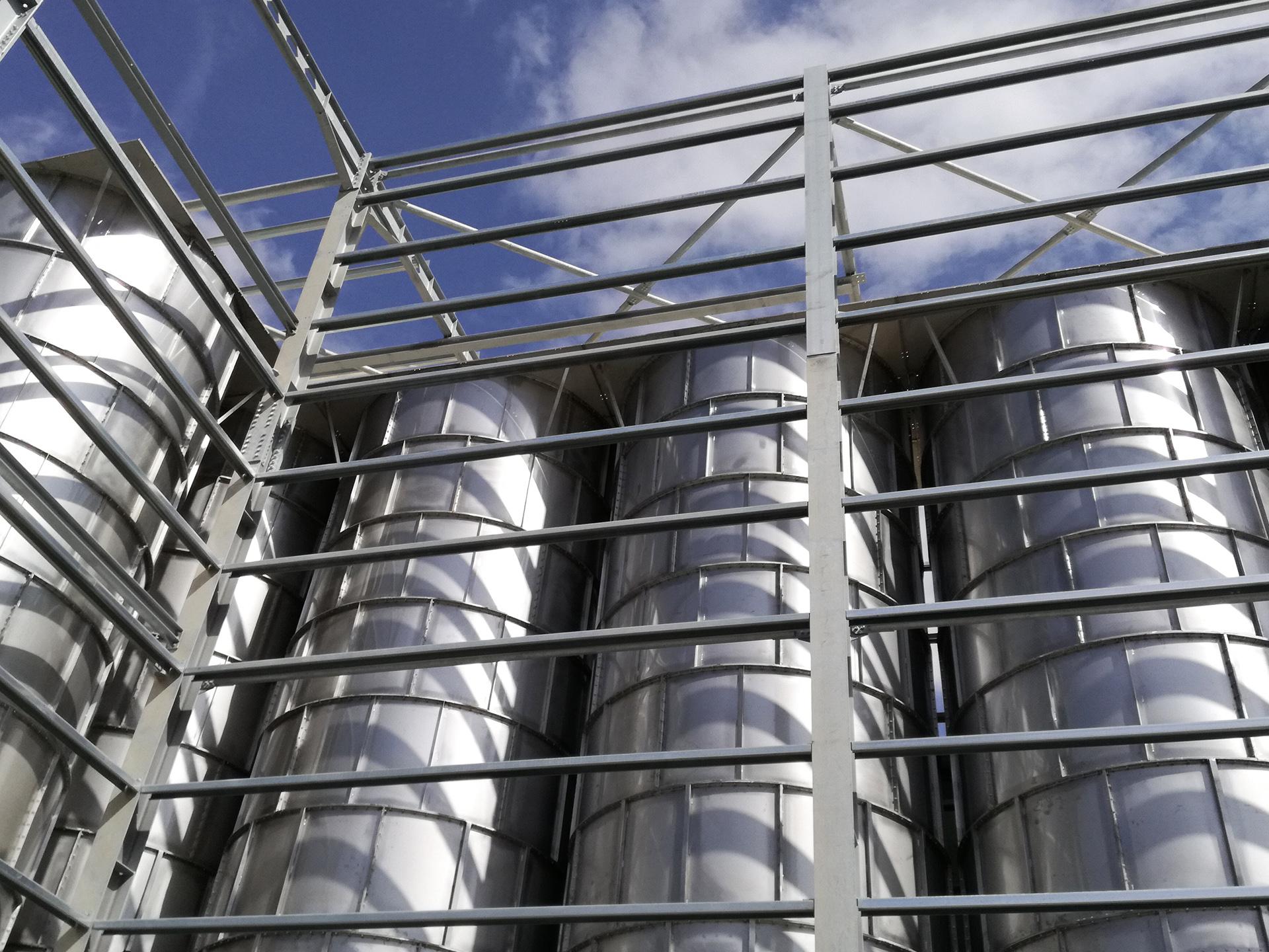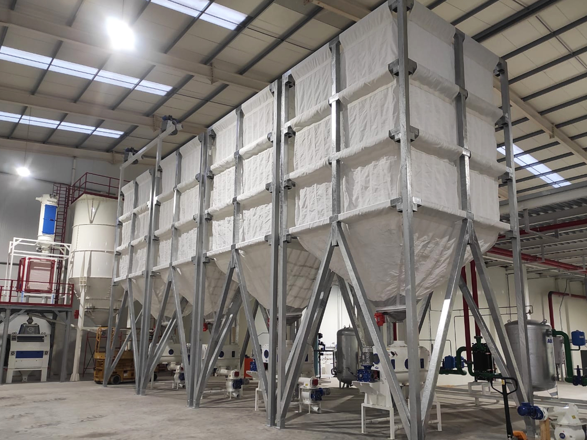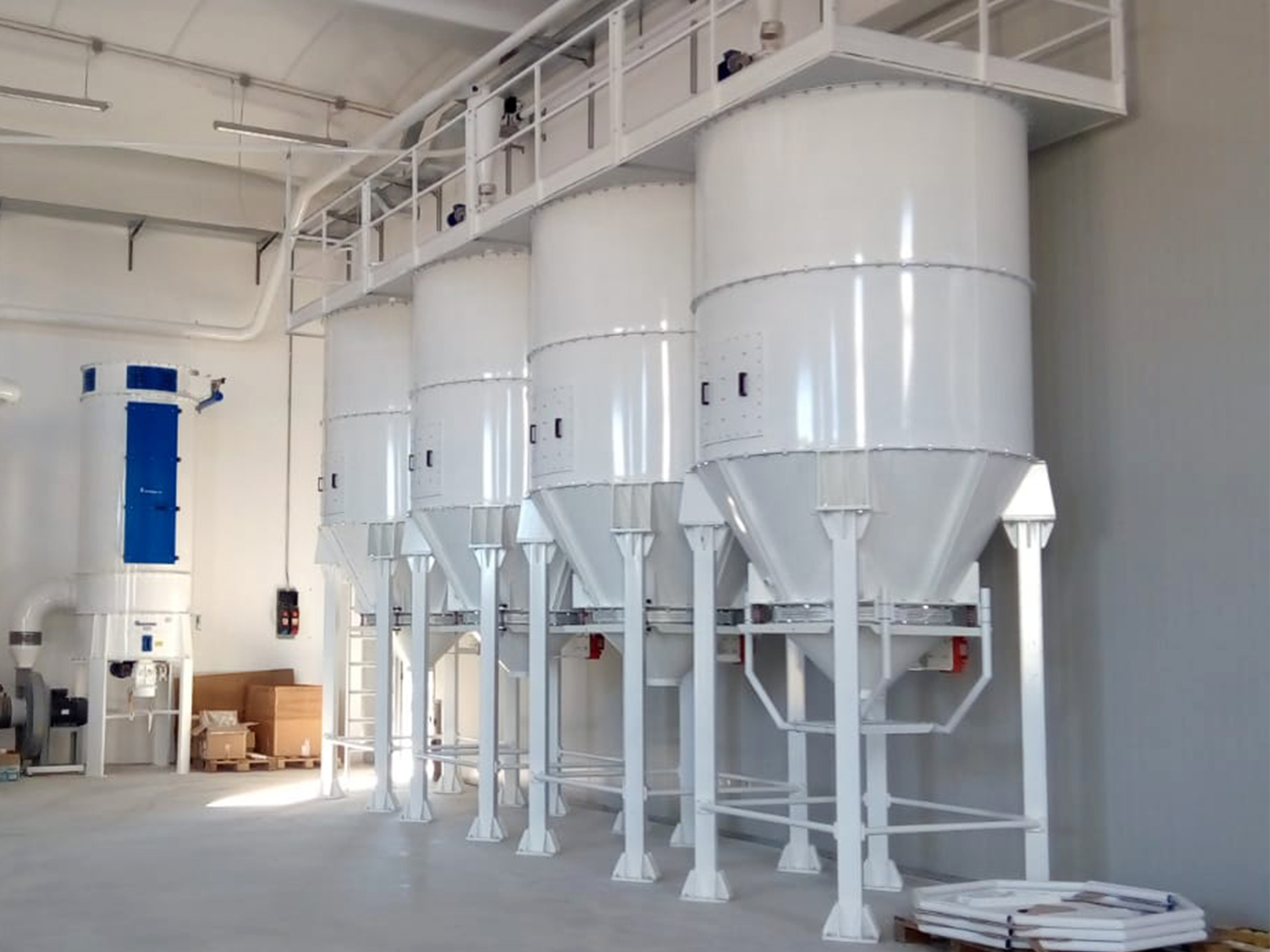 • Silos with smooth painted carbon steel sheets (internally finished with food-grade epoxy-polyamide paint);